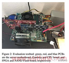 Our test platform includes a PCIe flash development board with FPGA and DRAM, a general-purpose CPU, and an MLC NAND flash chip. NAND flash programming, data scrambler, and ECC are fully implemented in the FPGA. The FTL runs on the FPGA and CPU. The board is connected to an x86-64 server running RHEL 6.7. We have full control over the hardware and software stacks, as well as Linux device drivers communicating with the device.
