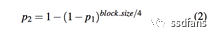 And the probability that any 1/4 block size attack pointer points to the interested block is p2: